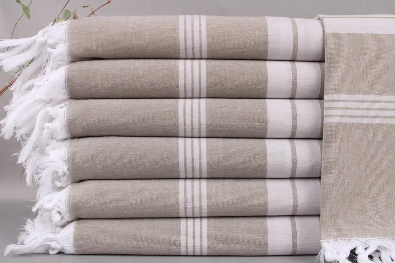 Woven from organic Turkish cotton, the beach towel ensures superior absorbency and softness. Characterized by dimensions of 32x67 inches (80x170 cm) and a weight of 200 grams, it has a hand-weaving tolerance of ±2 inches or 5 cm.