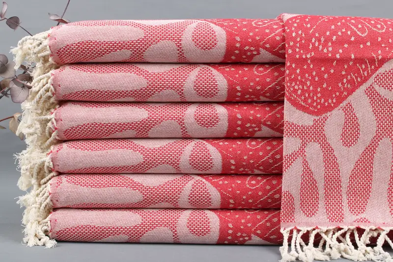 Weaved from organic Turkish cotton, each towel maintains a consistent dimension of 18x38 inches (45x95 centimeters) and a weight of 90 grams. Tolerance in size may vary by ± 2 inches or 5 centimeters due to hand-weaving techniques.