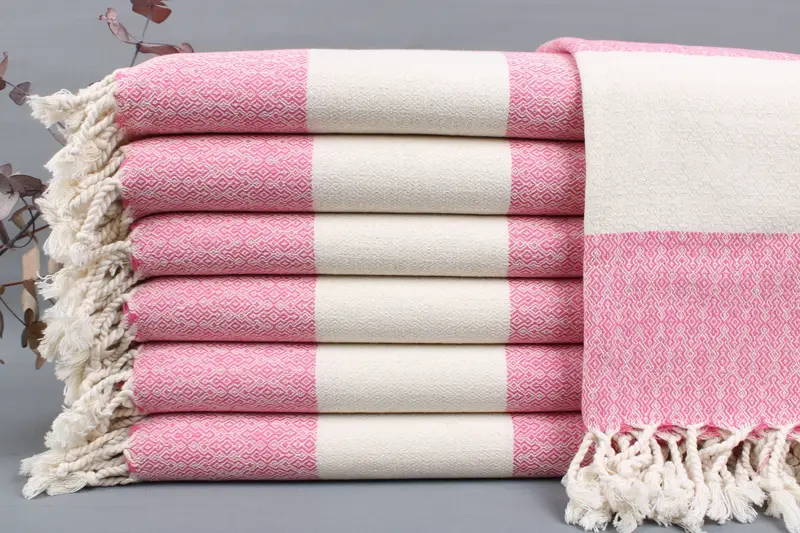 Organic Turkish cotton ensures superior absorbency and quality, resulting in towels that become softer with each wash. Each towel, blanket, or hand towel measures 40x70 inches or 100x180 centimeters, with a weight of 425-475 grams. Hand-weaving tolerances may result in dimensions varying by up to 2 inches or 5 centimeters.