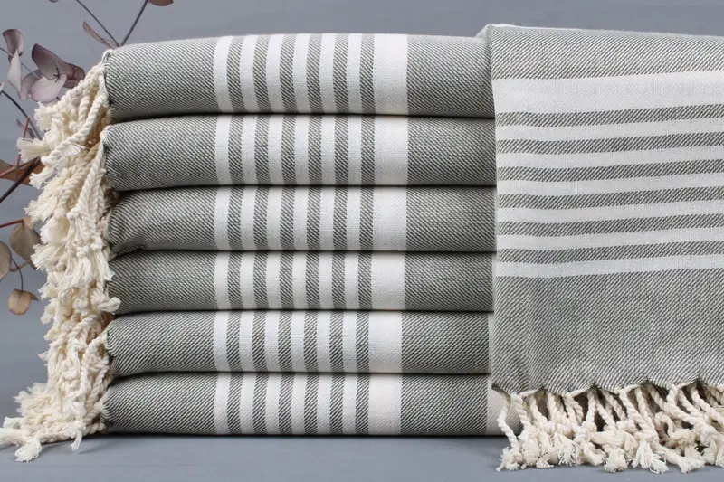 Organic Turkish cotton is utilized in the production of the towels, ensuring superior absorbency and durability. Each towel, blanket, or hand towel can be personalized with embroidery or personalized text, enhancing their aesthetic appeal. Characterized by dimensions of 40x70 inches or 100x180 centimeters, these items weigh between 425-475 grams, with a hand-weaving tolerance of ± 2 inches or 5 centimeters.