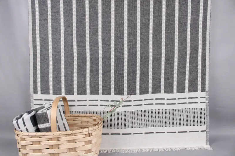 Organic Turkish cotton ensures superior absorbency and durability, resulting in a premium beach towel experience. Measuring 36x67 inches or 90x170 centimeters, these handwoven towels have a tolerance of ±2 inches or 5 centimeters. Each towel weighs approximately 460 grams, offering substantial coverage and comfort.