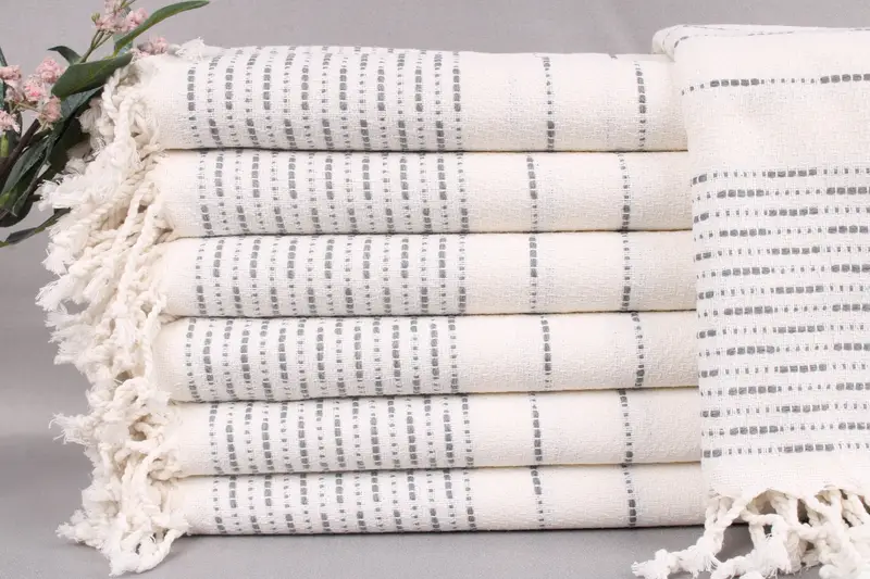 The hand-woven nature of the towels results in slight dimensional variances, adding to their artisanal ch...