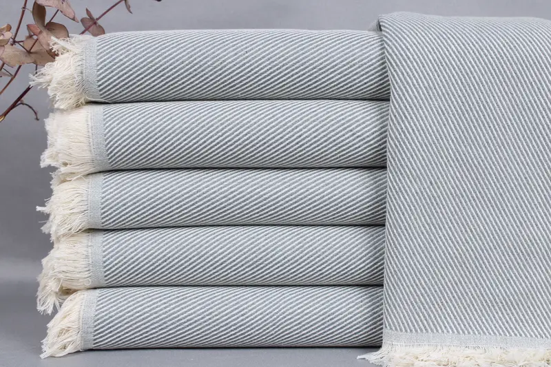 Weaving: Each item is meticulously crafted from organic Turkish cotton, ensuring durability and breathability. Characterized by their high absorbency, these textiles maintain their softness with each wash. Dimensions: The standard size of the towels, throws, and blankets is 36x71 inches (90x180 centimeters), with a tolerance of ± 2 inches or 5 centimeters due to the weaving process. The towels have a weight of 420 grams. Customization: Personalized items can include embroidery or printed names and logos. Detailed information must be provided in...