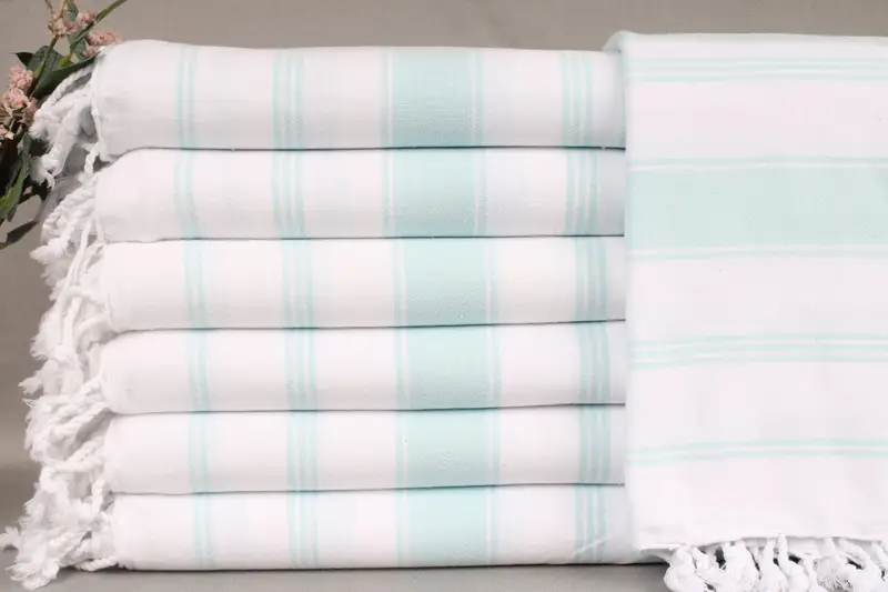 Woven from organic Turkish cotton, the beach towel is characterized by its 71x40 inches or 180x100 centimeter dimensions, ensuring a versatile addition to any setting. Weighing 310 grams, it is handmade with a ± 2" or 5cm tolerance due to its loom-woven nature, resulting in a consistent yet slightly varied product. Each towel can be personalized with embroidered letters, names, or logos, allowing placement in the middle of the bottom of the towel, accompanied by specific font and color preferences.