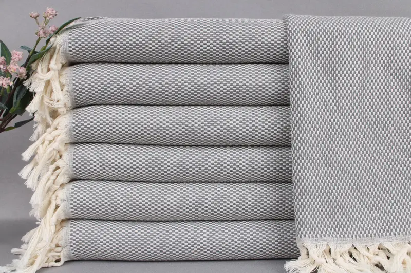 Our hand towels, woven from organic Turkish cotton, are characterized by their high absorbency and durability. Ensuring a soft texture post-wash, each towel measures 18x40 inches or 45x100 centimeters with a tolerance of ±2 inches or 5 centimeters. Weighing 120 grams, these towels are meticulously hand-woven, resulting in slight variations.