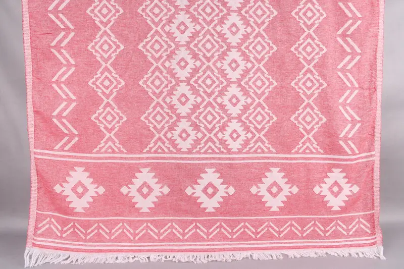 Organic Turkish cotton ensures a premium fiber composition, resulting in highly absorbent beach towels. These towels measure 73x40 inches or 185x100 centimeters, weigh 340 grams, and are characterized by a ± 2-inch or 5 cm tolerance due to hand-weaving. Each listing includes 1 towel, blanket, or hand towel, with bulk orders offering additional discounts.
