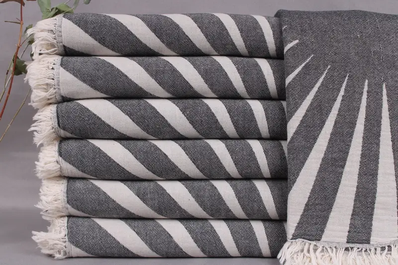 Characterized by organic Turkish cotton, the towels ensure superior absorbency and softness. Each towel is meticulously hand-woven on traditional looms, resulting in a size of 36x71 inches or 90x180 centimeters, with a weight of 320 grams. The weaving tolerance is ± 2 inches or 5 centimeters.
