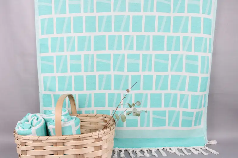 Woven exclusively from Organic Turkish Cotton, these beach towels are characterized by their high absorbency and durability. Resulting in a lightweight yet robust towel, the material ensures exceptional moisture wicking properties. Dimensioned at 34x69 inches or 85x175 centimeters, these towels weigh 360 grams. Hand-woven on looms, they permit a tolerance of ± 2 inches or 5 centimeters due to the weaving process.