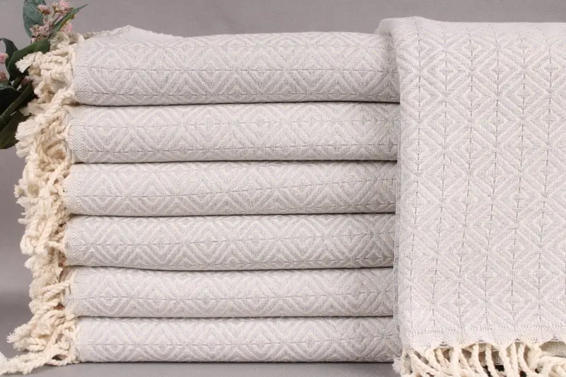 Turkish towels, renowned for their high-quality fiber composition and superior absorbency, are characterized by their organic Turkish cotton material. Each towel is meticulously woven by hand, ensuring uniformity and durability. Resulting in a towel that measures 36x71 inches or 90x180 centimeters with a permissible tolerance of ± 2 inches or 5 centimeters, weighing 460 grams.