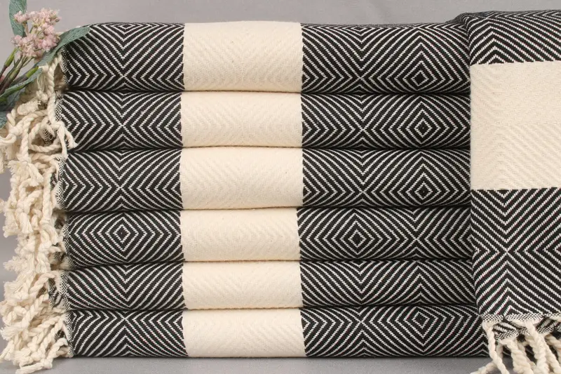 Turkish beach towels are woven from organic Turkish cotton, ensuring superior absorbency and comfort. Characterized by dimensions of 40x79 inches (100x200 cm) and weighing 520 grams, these towels allow for slight weaving tolerances of ±2 inches (5 cm). Each order includes options for embroidery customization with letters, names, or logos, enabling personalization.