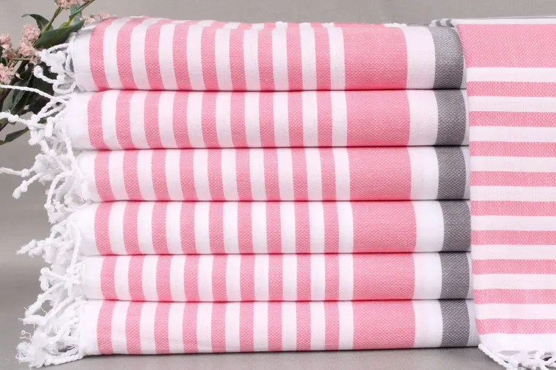 Characterized by organic Turkish cotton, these towels ensure superior absorbency and softness. Each piece measures 36x67 inches or 90x170 centimeters and weighs 274 grams. Weaving tolerances may vary by ± 2 inches or 5 centimeters.