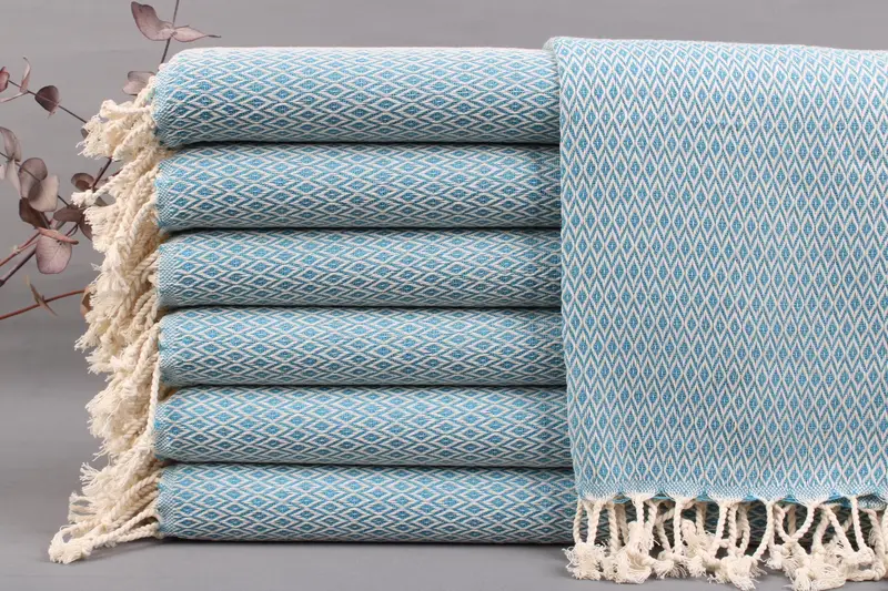 The product is woven from organic Turkish cotton, ensuring premium quality and absorbency. Resulting in a product that measures 20x40 inches or 50x100 centimeters, with a weight of 100 grams. The hand-weaving tolerance allows for dimensions to vary by ± 2 inches or 5 centimeters.