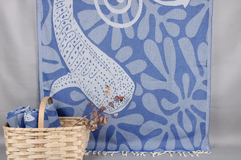 Characterized by its organic cotton composition, the towel showcases high absorbency, ensuring efficient moisture wicking and quick drying. Each towel measures 40x71 inches (100x180 centimeters) and weighs 450 grams, with a hand-weaving tolerance of ±2 inches or 5 centimeters. Resulting in a slightly imperfect size due to handcrafting, the towels present a natural and artisanal touch.