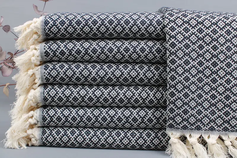 The Turkish Beach Towels are characterized by their fiber composition made from 100% organic Turkish cotton, ensuring maximum absorbency and durability. Measuring 20x38 inches (50x95 cm) with a weight of 100 grams, these towels allow for a weaving tolerance of ± 2 inches or 5 cm. Resulting in a slightly variable size, the hand-woven process contributes to the unique texture and quality of each piece.