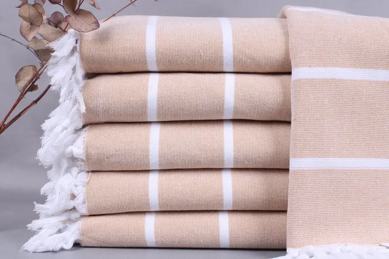 Each Turkish beach towel is woven from organic Turkish cotton, ensuring a high-quality, soft, and absorbent textile. Measuring 40x63 inches or 100x160 centimeters, these towels weigh approximately 500 grams, and have a hand-weaving tolerance of ± 2 inches or 5 centimeters. Each listing includes one towel, blanket, or hand towel, and options for personalization with embroidered letters, names, or logos are available.