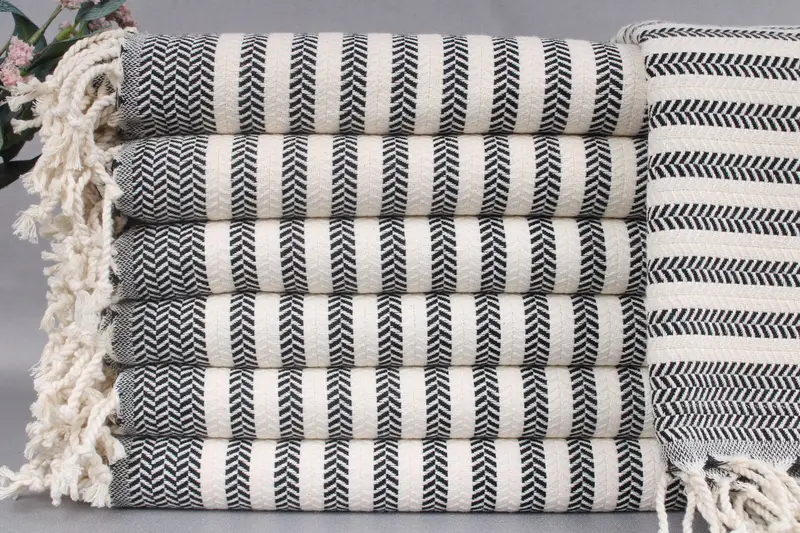 Turkish beach towels, personalized gift towels, and bedspreads are woven from organic Turkish cotton, ensuring high-quality absorbency and durability. Characterized by dimensions of 40x71 inches or 100x180 centimeters, these towels weigh approximately 440 grams, with a tolerance of ± 2 inches or 5 centimeters due to hand-weaving techniques. Resulting in precision, each product allows for embroidery customization by specifying letters, names, or logos along with preferred fonts and colors.