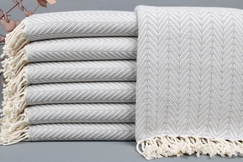 Turkish towels are characterized by their use of organic Turkish cotton, woven by hand on looms to ensure quality and authenticity. Resulting in towels that are 40x70 inches or 100x180 centimeters with a tolerance of ± 2 inches or 5 centimeters, these towels weigh between 425 and 475 grams. Each towel can be personalized with embroidered letters, names, or logos, providing an array of customization options.