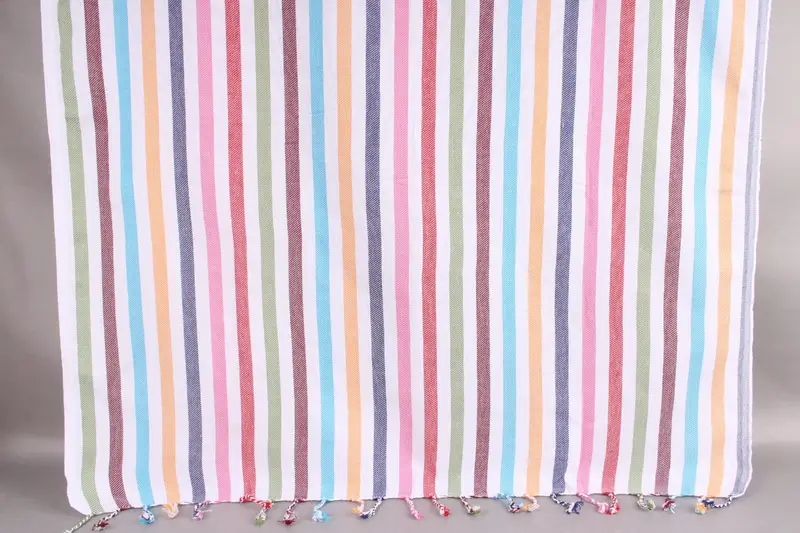 Organic Turkish cotton characterizes these beach towels, ensuring exceptional softness and absorbency. Each towel measures 40x71 inches or 100x180 centimeters and weighs 300 grams, allowing for ± 2 inches or 5 centimeters of tolerance due to hand-weaving techniques. Customers can personalize their purchases with embroidery or monograms, specifying letters, logos, font style, and placement.