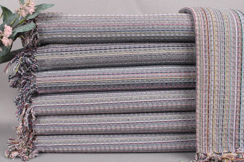 Characterized by their high-quality Turkish cotton, these towels ensure superior absorbency and durability. Resulting in a soft yet sturdy towel, the materials are handwoven on traditional looms with organic Turkish cotton. Each towel measures 40x71 inches (100x180 centimeters), weighing 420 grams, with a tolerance of ±2 inches (5 centimeters) due to hand-weaving techniques.