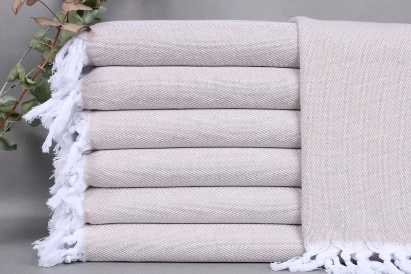 Each Turkish towel features a weave made from organic Turkish cotton, characterized by high absorbency and durability. Resulting in a lightweight 120 grams fabric, these towels are versatile for various uses. Dimensions are 18x34 inches (45x85 cm), with a weaving tolerance of ± 2 inches (5 cm).