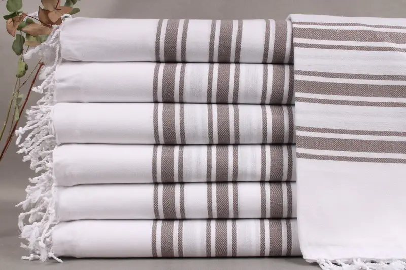 Organic Turkish cotton characterizes these towels, ensuring both luxury and eco-friendliness. Resulting in highly absorbent fabrics, each towel measures 40x71 inches or 100x180 centimeters, weighing 280 grams. Hand-woven tolerances allow for variations of ±2 inches or 5 centimeters.