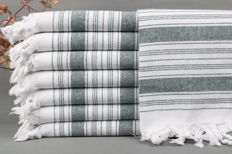 The towels are characterized by their composition of organic Turkish cotton, ensuring high absorbency and softness. Resulting in towels weighing between 425 to 475 grams, each measuring approximately 40x70 inches or 100x180 centimeters. This hand-woven material allows for a tolerance of ± 2" or 5 cm. Each listing includes one towel, blanket, or hand towel. The Turkish towels, hand towels, or blankets in the shop can be personalized with embroidery or a name. Orders over 35 USD qualify for free shipping worldwide, with delivery by FedEx or DHL E...