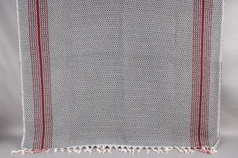 The product is characterized by its construction using Organic Turkish Cotton, ensuring durability and softness. Resulting in high absorbency, these beach towels measure 71x40 inches or 180x100 centimeters and weigh 400 grams, with a hand-weaving tolerance of ±2 inches or 5 centimeters. Customization options include embroidery of letters, names, or logos, ensuring personalization with specific font, color, and placement details provided by the customer.
