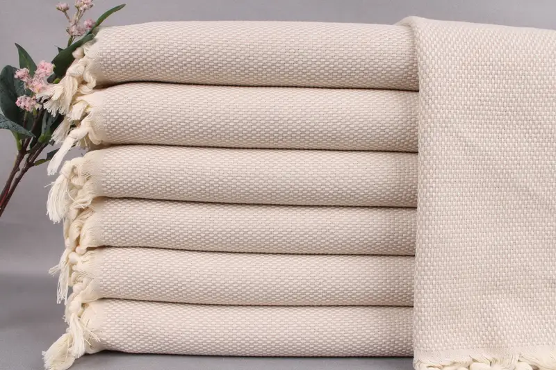 Each personalized kitchen towel is woven from organic Turkish cotton, ensuring superior absorbency and durability. Characterized by its 18x40 inches dimension or 45x100 centimeters, these towels weigh 120 grams and have a weaving tolerance of ±2 inches or 5 centimeters. Handcrafted on looms, the towels provide customization options for embroidery with letters, names, or logos, ensuring personalization and high-quality finish.
