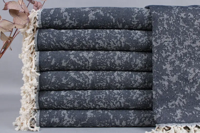 The Turkish towels are made from organic Turkish cotton, ensuring a premium texture and high absorbency. Measuring 40x71 inches or 100x180 centimeters, these towels weigh approximately 400 grams, characterized by a weaving tolerance of ± 2 inches or 5 centimeters. Each listing includes a single towel, blanket, or hand towel, which can be customized with embroidery or personalization details as specified by the customer.