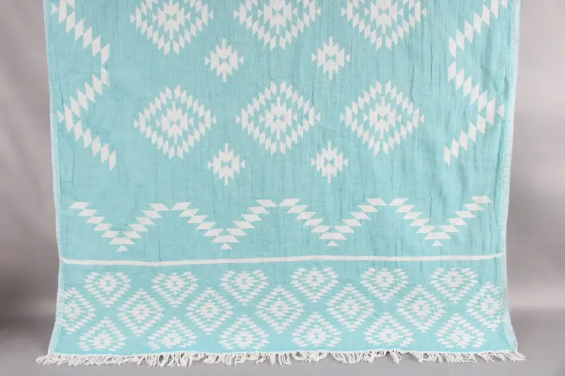 Characterized by organic Turkish cotton, these towels exhibit superior absorbency and soft texture. Ensuring durability and comfort, the towels measure 36x71 inches or 90x180 centimeters, with a weight of 320 grams. Weaving tolerances allow for size variations of up to ±2 inches or 5 centimeters.