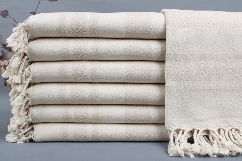 Woven from organic Turkish cotton, these towels exhibit superior absorbency, ensuring optimal moisture management. Measuring 40x70 inches (100x180 cm) with a tolerance of ±2 inches (5 cm), these towels weigh between 425-475 grams, resulting in robust yet soft textile products. Each towel can be personalized with embroidery or printing of letters, names, or logos, providing flexibility for special occasions. Pre-washed for softness and shipped within 2-5 business days, these towels offer a blend of tradition and modern functionality.