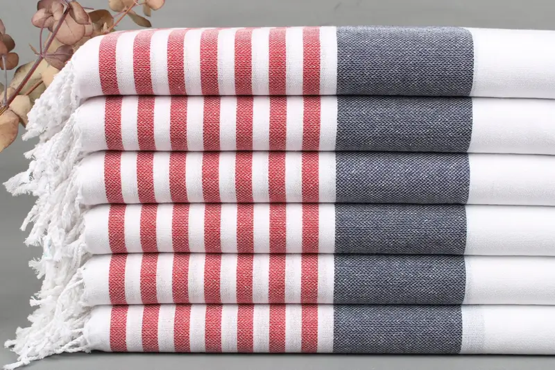 Characterized by the organic Turkish cotton fiber, these towels ensure superior absorbency. Each towel, blanket, or hand towel, weighs between 425 to 475 grams, woven meticulously on looms. Tolerance in size ranges from ±2 inches or 5 centimeters, resulting in dimensions of 40x71 inches or 100x180 centimeters.