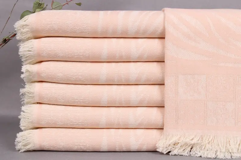 Each towel is woven from organic Turkish cotton on looms, resulting in high-quality hand-crafted products. The towels are characterized by their absorbency and gentle texture, ensuring a luxurious feel post-washing. Dimensionally, the towels measure 20x28 inches or 50x70 centimeters, with a tolerance of ± 2 inches or 5 centimeters due to manual weaving. Weighing approximately 650 grams, these towels offer substantial absorbency and durability.