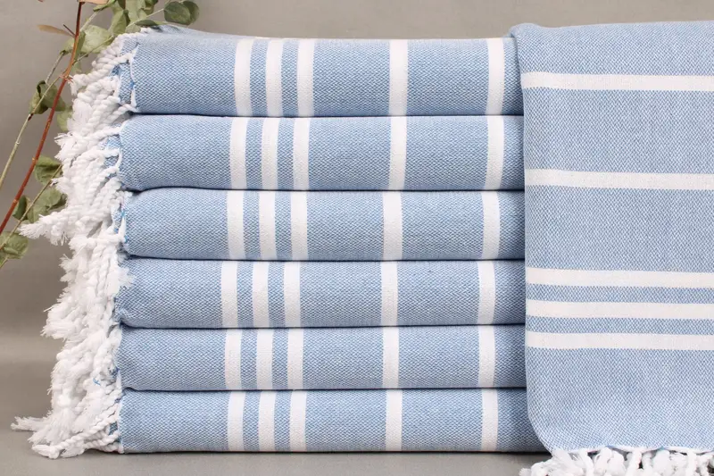 The Beach Towel is woven from organic Turkish cotton, ensuring a high-quality, eco-friendly fiber composition. Resulting in superior absorbency, these towels exhibit excellent water-wicking properties and durability. Each towel is meticulously hand-woven on looms, measuring 40x71 inches or 100x180 centimeters. Weighing 440 grams, these towels have a tolerance of ±2 inches or 5 centimeters due to the hand-weaving process.