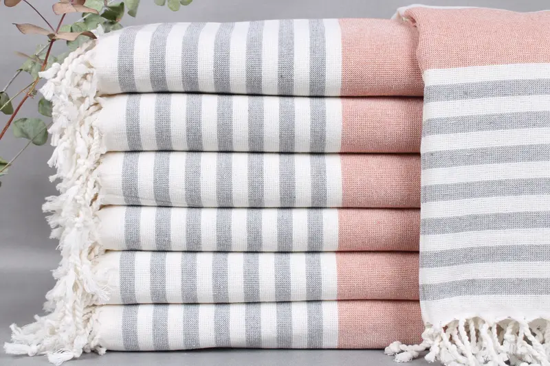 Organic Turkish cotton ensures superior absorbency and softness. Characterized by a size of 36x67 inches or 90x170 centimeters, these towels weigh 380 grams. Weaving tolerances of ±2 inches or 5 centimeters result in slight variations in dimensions.