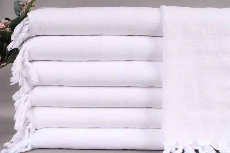 Organic Turkish cotton ensures superior absorbency and durability, characterized by the product's woven fibers. Resulting in a product that is both soft and resilient, this material is ideal for a variety of uses. Each towel is meticulously hand-woven, measuring 18x40 inches or 45x100 centimeters with a tolerance of ± 2 inches (5 centimeters) and weighing 110 grams.