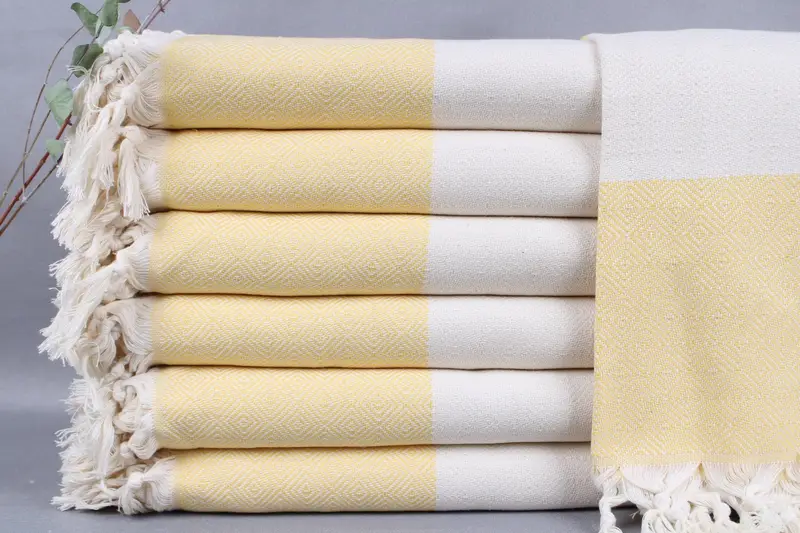 The custom beach towel is composed of Turkish cotton, ensuring its high absorbency and durability. Characterized by its dimensions of 40x71 inches (100x180 cm), with a weight of 420 grams, the towel allows for a ±2" (5cm) tolerance due to hand weaving. Each towel can be personalized with embroidery or monogramming, allowing customers to specify letters, names, logos, font, color, and placement.