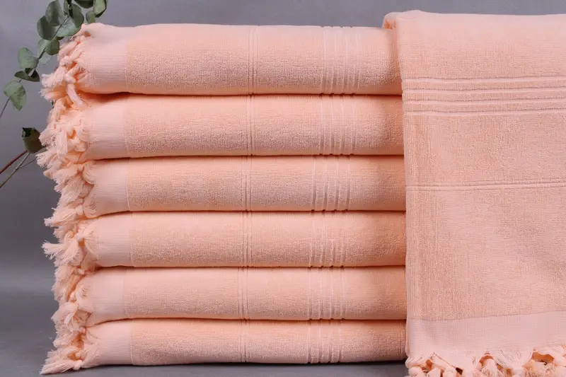 Fiber composition ensures exceptional absorbency, characterizing organic Turkish cotton towels. Each product is meticulously woven by hand, resulting in dimensions of 36x71 inches or 90x180 centimeters, with a tolerance of ±2 inches or 5cm. Towels weigh 400 grams.