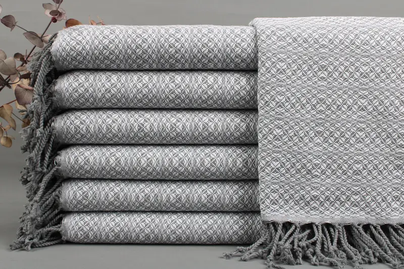 Characterized by natural fiber composition, the Organic Cotton Towels ensure enhanced absorbency. Resulting in luxurious softness, these towels, blankets, and hand towels are woven by hand from organic Turkish cotton, measuring 40x70 inches or 100x180 centimeters. The weight varies between 425-475 grams, with a tolerance of ± 2" or 5 cm due to the weaving process.