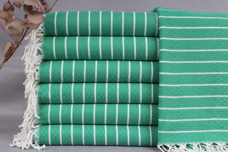 All products are woven from organic Turkish cotton, ensuring durability and softness. Characterized by a weight of 300 grams, dimensions of 40x71 inches or 100x180 centimeters, and a tolerance of ± 2 inches or 5 centimeters, these towels and throws are handmade. Resulting in personalized options available, including embroidery or name placement, these items cater to various usages such as beach, bath, and spa.