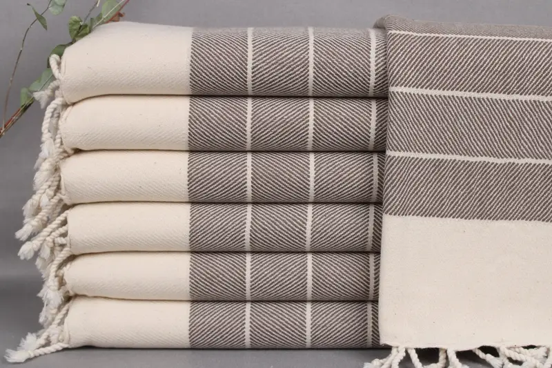 All beach towels, hand towels, and blankets are woven from organic Turkish cotton on looms, ensuring a sustainable and high-quality fiber composition. Characterized by their absorbency, these towels measure 16x36 inches or 40x90 centimeters, with a weight of 100 grams. Hand-weaving tolerances result in dimensions that can vary by ±2 inches or 5 centimeters.