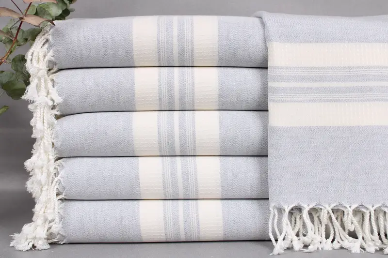 Organic Turkish cotton characterizes the Turkish beach towels, ensuring superior absorbency and durability. Each towel exhibits dimensions of 38x60 inches or 95x150 centimeters, and weighs 250 grams, with a tolerance of ± 2" or 5 centimeters due to hand-weaving. Each listing features 1 towel, blanket, or hand towel, customizable with embroidery, letters, names, or logos with specific placement and color options.