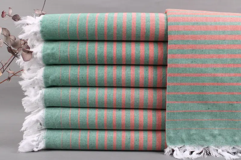 Our bath towels are characterized by their fiber composition of organic Turkish cotton, ensuring excellent absorbency and durability. Each towel is woven on looms and handmade, resulting in a unique texture and design. The towels measure 40x69 inches or 100x175 centimeters, with a weight of 240 grams, and have a weaving tolerance of ±2 inches or 5 centimeters.