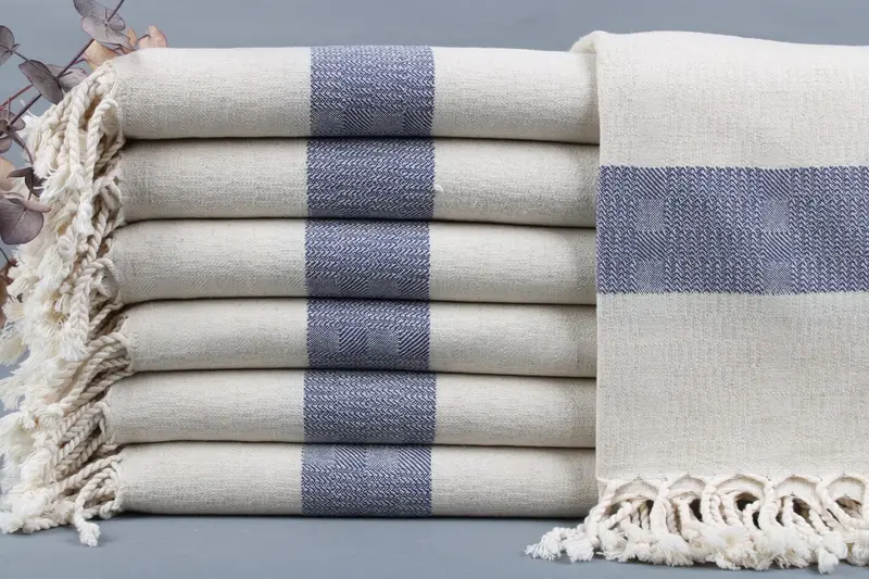 The Turkish towels are woven from organic Turkish cotton, ensuring durability and breathability. Characterized by dimensions of 36x71 inches or 90x180 centimeters, with a weight range of 275-325 grams, these towels exhibit a tolerance of ±2 inches or 5 centimeters due to hand-weaving. Embroideries can be customized to include letters, names, or logos, with care instructions to wash before first use, ideally on 30-40 degrees and low cycles. Each listing includes one towel, blanket, or hand towel, with free worldwide shipping for orders over 35 U...