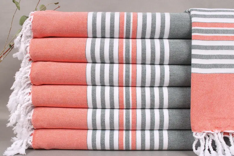 Handwoven Turkish beach towels are crafted from organic Turkish cotton, ensuring superior absorbency and durability. Measuring 40x67 inches (100x170 centimeters) with a weight of 220 grams, these towels have a tolerance of ±2 inches (±5 centimeters) due to hand-weaving techniques. Each towel can be personalized with embroidery or monograms, offering customization options for special occasions.