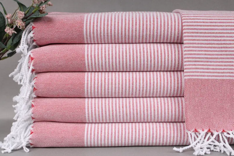 Characterized by its organic Turkish cotton composition, each towel is woven on looms ensuring durability and softness. Resulting in a product with dimensions of 18x40 inches or 45x100 centimeters, these towels weigh approximately 100 grams, with weaving tolerances of ± 2" or 5cm. Towels can be customized with embroidery, names, or logos, pre-shrunk status confirmed post initial washes.
