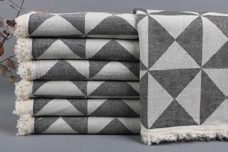 Turkish towels are woven from organic Turkish cotton, ensuring a high-quality, sustainable product. Resulting in a towel that measures 40x70 inches or 100x180 centimeters, with a weight of 425-475 grams. Each towel exhibits a slight tolerance of ± 2 inches or 5 centimeters due to the hand-weaving process.