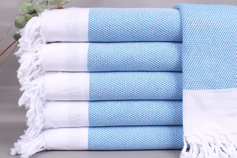 The Turkish Beach Towel is woven from organic Turkish cotton, characterized by its absorbency and durability. It measures 40x71 inches or 100x180 centimeters, with a weight of 390 grams, ensuring a balance between size and comfort. Hand-woven on looms, the dimensions may vary by ±2 inches or 5 centimeters due to manual production.