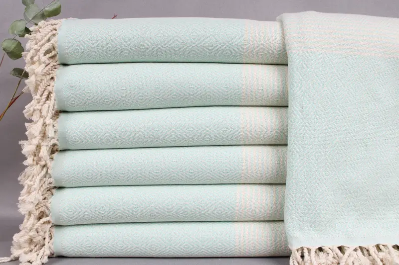 Handmade Turkish towels, characterized by their superior absorbency, are woven from organic Turkish cotton on traditional looms. These towels, weighing 410 grams, provide durability and comfort, ensuring an enhanced user experience. Each piece measures 40x71 inches (100x180 cm) with a tolerance of ±2 inches or 5 cm due to the hand-weaving process.