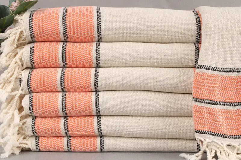 Each Turkish towel is woven from organic Turkish cotton, ensuring high absorbency and a soft texture. Resulting in an optimal weight of 430 grams, these towels measure precisely 36x71 inches or 90x180 centimeters. However, due to the hand-weaving process, dimensions may vary by up to ± 2 inches or 5 centimeters.